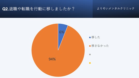 連休明けに会社をやめようと検討したことがあると答えた方に対して実際に退職や転職を行動に移したかどうか調査しました。