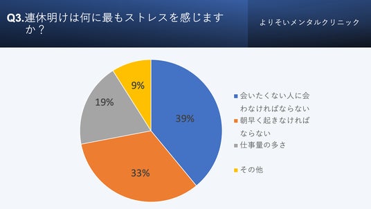 その結果、会いたくない人に会わないといけない人間関係や早起きと答えた方が多く見えました。連休で崩れた生活リズムを再び戻すこともストレスに感じるようです。