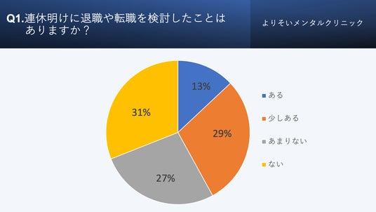 連休明けに退職や転職を検討する会社員は4割にのぼり、そのうち数%は実際に会社を辞めていることが明らかとなりました。