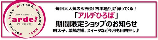 毎回大人気の即売会「古本通り」が帰ってくる!明太子、藁焼き鰹、スイーツなど今月も目白押し♪アルデ新大阪「アルデひろば」期間限定ショップのお知らせ