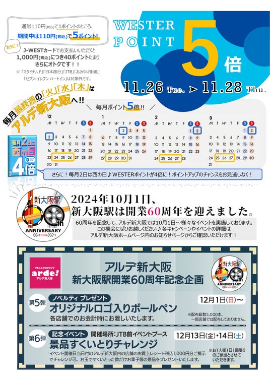 4.ポイントアップキャンペーン、新大阪駅開業60周年記念企画について