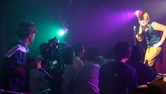 今回、「ぐんまさん」を演じた中村俊介さんは、ぐんまちゃんよりも一足先に楽屋入りし、メイクさんの手によってぐんまちゃんの宿敵へと変貌を遂げます。スタンドアップコメディ劇場のセットには、観客役のエキストラが入り、本格な雰囲気に包まれる中、中村さんはコメディアンとしての「ぐんまさん」を、ベテラン芸人さながらの雰囲気を纏って演じてくださり、現場を盛り上げて下さいました。