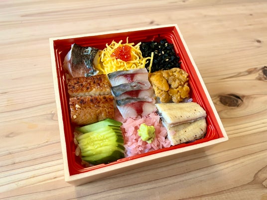 ・埼玉県産の養殖さば、うに、うなぎを使った「3種のチラシ寿司」(小鉢、けんちん付き) 2,480円