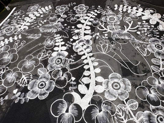 熱海の海と山の景色をどちらも堪能することができるACAO FORESTエリアでは、施設エントランス周辺にやましたあつこの床絵と壁画、小林一毅のアートボードが展開されています。どちらも会期中日が昇っている間は鑑賞可能です。(ACAO FORESTへの入園は別途入園料がかかります。ATAMI ART GRANTチケットをお持ちの方には入園割引あり。)