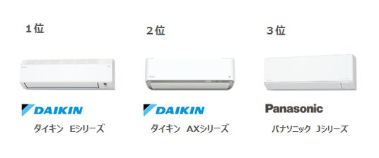 「12~16畳」部門でも、ダイキンブランドで最もお買い得なEシリーズが1位を獲得。リビング等に設置される大型機種は、換気や室温調整に優れた高機能モデルが求められる傾向があります。しかし、猛暑で故障、すぐ買い替えざるを得ないが10万円超の出費、という状況で、高コスパのEシリーズが人気を集めました。