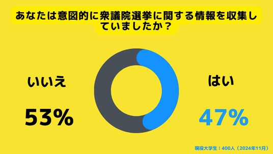 47%の現役大学生が衆議院選挙に関する情報を意識的に収集していたと回答しました。