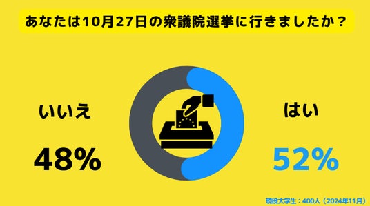 52%の大学生が衆議院選挙に行ったと回答しました。