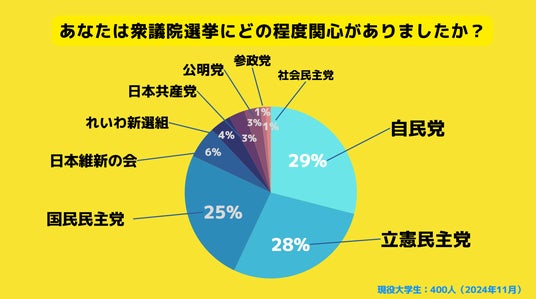 29%の衆議院選挙に行った現役大学生が自民党に投票したと回答しました。