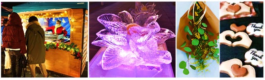 氷柱花や氷のオブジェの展示を行います。初日は氷のオブジェ制作実演をご覧いただけます!開催日限定(※)でステンシルを使ったカレンダー制作体験やキッチンカー出店も!