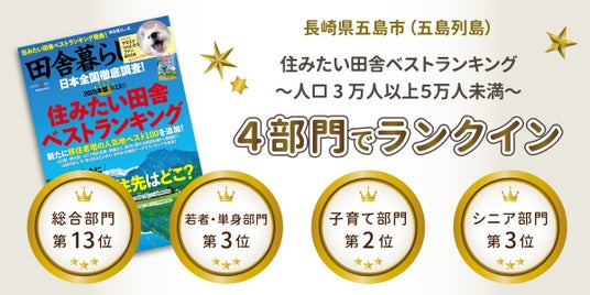 移住者数が6年連続200人超え!五島列島・五島市が4部門でランクイン!宝島社『田舎暮らしの本』2月号、「2025年版 住みたい田舎ベストランキング」(人口3万人以上5万人未満のまち)