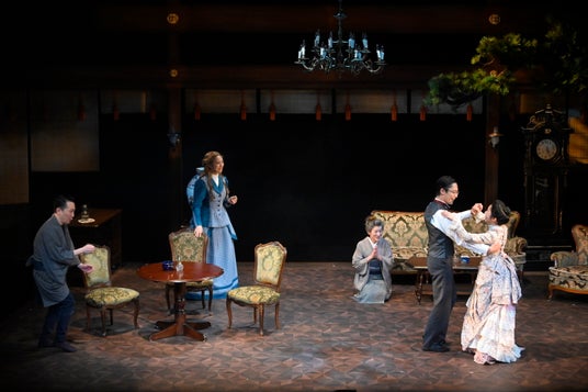 俳優・脚本家・演出家として幅広く活動し、日本の演劇界をけん引する一人であるマキノノゾミが文学座に書き下ろし、2007年に初演された『殿様と私』。ミュージカル映画の名作『王様を私』を下敷きに、西洋化していく日本に馴染めずに苦労する「殿様」とアメリカ人女性を中心にした物語が展開されるウェルメイド作品だ。