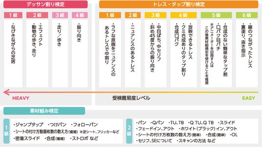 今回の第1回アニメータースキル検定では、「トレス・タップ割り検定」の6級と5級を開催いたします。この「トレス・タップ割り検定」はアニメーターのスキルの土台となる「動画」という分野の中でも基礎である「トレス」と「タップ割り」の技術を測る検定です。6級では原画トレスが、5級では目パチ口パクが課題となります。