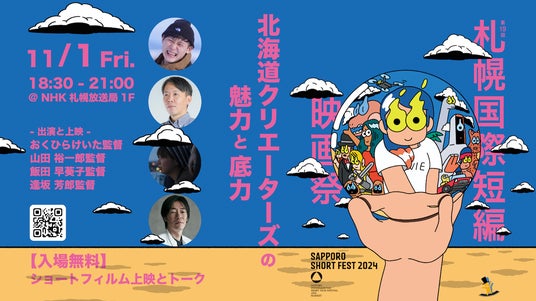つきましては、11月1日(金)18時30分よりNHK札幌放送局との共催で、オンライン上映のキックオフイベント「北海道クリエーターズの魅力と底力」を、NHK札幌放送局 8K公開スタジオにて開催いたします。