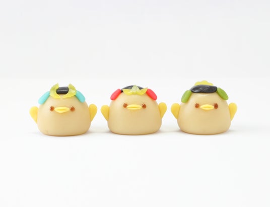 練り切りの和菓子でぴよりんを表現した、可愛らしい「ぴよりん三英傑セット」が販売されます。