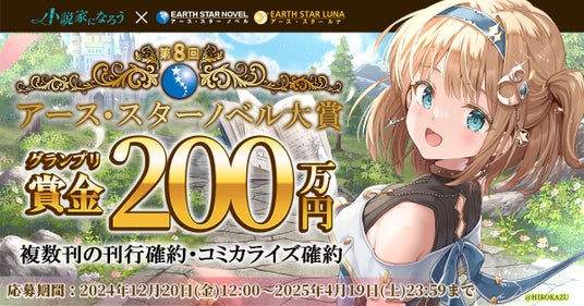 株式会社アース・スター エンターテイメント(東京都品川区)は同社が刊行するノベルレーベル【アース・スターノベル】と【アース・スター ルナ】による、株式会社ヒナプロジェクトが運営する『小説家になろう』との共同企画「第8回アース・スターノベル大賞」の開催を特設サイトにて本日発表いたしました。