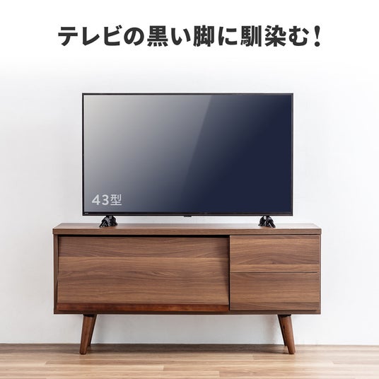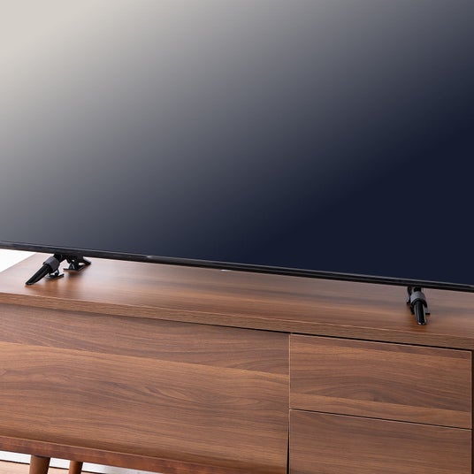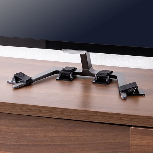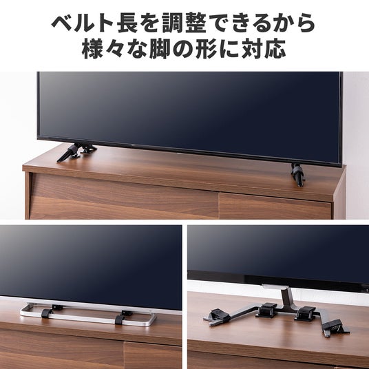 最大65インチまでのテレビに対応しており、ベルト長の調節が可能なため、様々なテレビの脚の形に取り付けできます。
