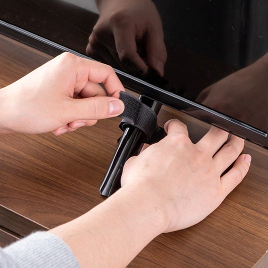 黒色のベルトと接着付きフックを使用し、設置後もテレビのデザインを損なうことなく目立ちません。どんなインテリアにも自然に馴染むため、部屋の雰囲気を壊すことなく使用できます。