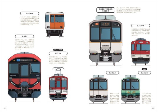 イラストは、1/80、1/45、1/150の鉄道模型スケールで描かれており、車両の大きさの違いや同じ形式の時代差、似た前面の違いなど、細部まで丁寧に描き分けられています。鉄道愛好家、とりわけ私鉄ファンや鉄道模型ファンはもちろん、漢字が読めない小さなお子さまでも、カラフルなイラストを楽しめる1冊です。