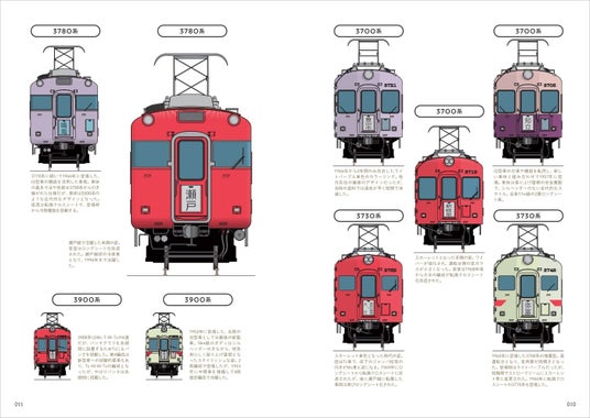 赤がメインカラーの名鉄ですが、過去のカラーも掲載し、時代の変化を楽しめます。