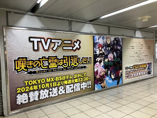 絶賛放送&配信中!TVアニメ『嘆きの亡霊は引退したい』交通広告をJR池袋駅北改札外通路付近にて掲出開始