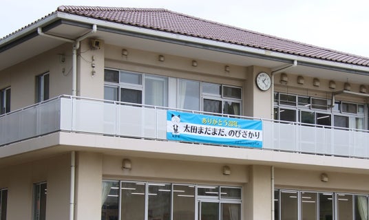 記念横断幕「ありがとう20年。太田まだまだ、のびざかり」