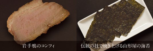 海苔は江戸時代から続く老舗「山形屋」さまの海苔を使用しました。老舗海苔店ならではの伝統の技で焼き上げる海苔の薫り、食感、口溶けをお楽しみいただけます。
