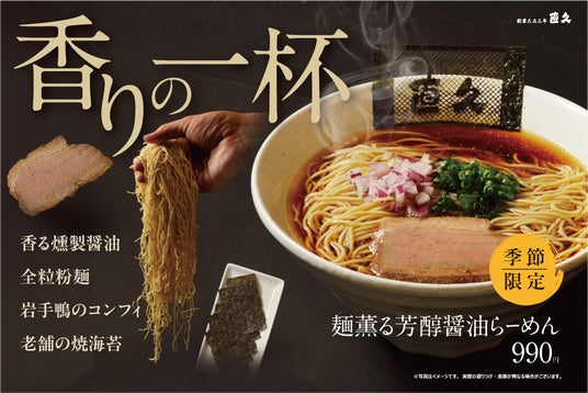 老舗らーめん店「銀座直久」より初秋にお届けする期間限定の“香りの一杯”『麺薫る芳醇醤油らーめん』を2024年9月1日(日)より期間限定販売