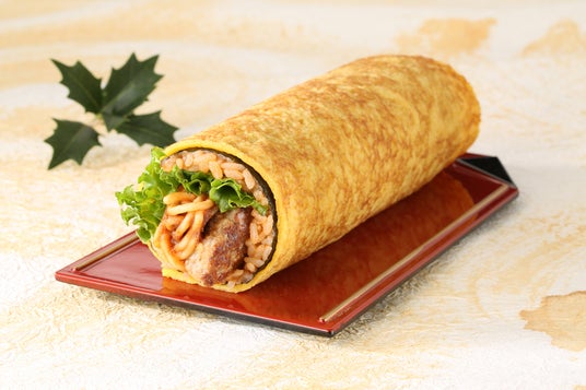 特徴:まるで“お子さまランチ”な恵方巻。ハンバーグ&ナポリタンをトマトソースごはんに合わせました。
