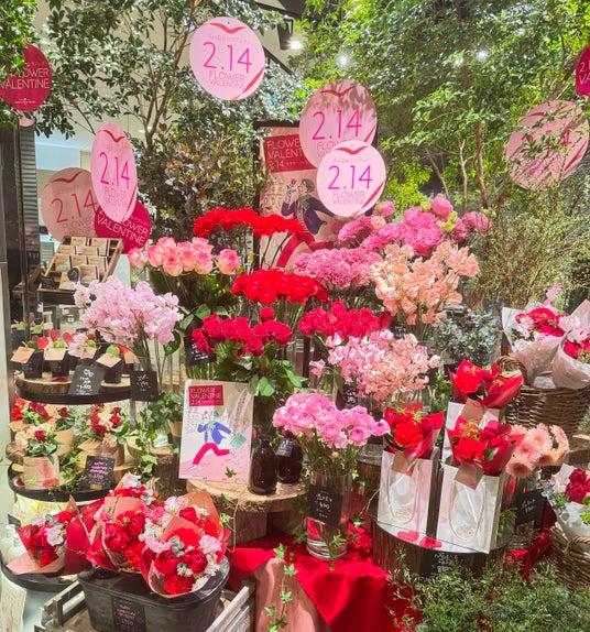 (画像2)青山フラワーマーケット フラワーバレンタインの店頭の様子(2024年2月撮影)