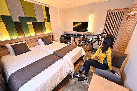 先着100名限定 キャンペーン対象の「サイクリストにやさしい宿」宿泊代が1人当たり5,000円OFF 割引条件は、宿泊当日に自転車で来館し、SNS投稿いただけるサイクリスト
