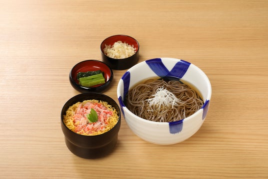 紅ずわい蟹ご飯定食蟹味噌と紅ずわい蟹のほぐし身を使った、蟹風味たっぷりのご飯です。冬の味覚をおそばとともにお楽しみください。