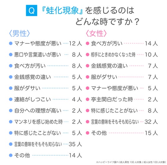 蛙化現象の意味や由来とは?原因となった行動について男女100人にアンケート