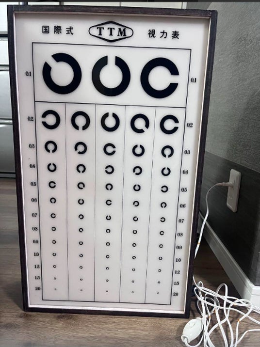 視力検査の際に使用する、アルファベットの「C 」のようなマークが並んだ表。普段は「視力検査のやつ」や「視力検査のC」などと呼ばれている。