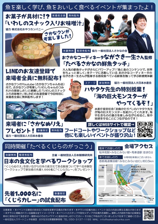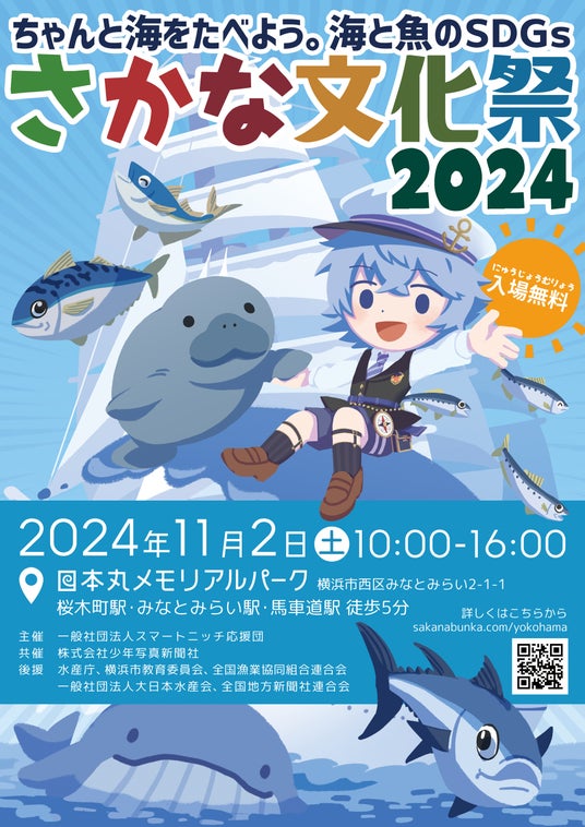 一般社団法人スマートニッチ応援団(横浜市、代表:吉田 圭)は、若年層の家族と持続可能な水産の未来を考えるSDGsと魚食推進イベント「さかな文化祭( https://sakanabunka.com/ )」を2024年11月2日(土)に横浜みなとみらい、2024年11月4日(月)に兵庫県明石市の二地域で開催します。