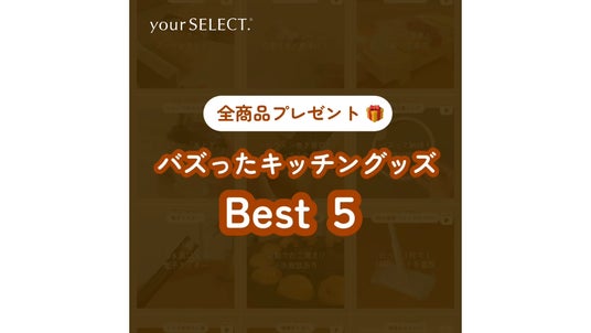 買い物メディア「your SELECT.」公式SNSでの動画総再生数1億回突破を記念して紹介したアイテムの中から、いいね数が多かったアイテムBest5をプレゼント!