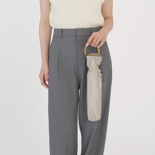 そこで「Peach drop SUN SHADE」の2段折りたたみ傘は、閉じた後にそのままベルトで留めれば長傘のように持ち運べる仕様に。もちろん、小さく折りたたんでケースに収納することも可能です。