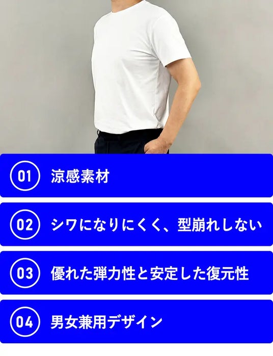 接触冷感/ドライ/シワになりにくい/優れた弾力 爽やかなTシャツスタイルで快適