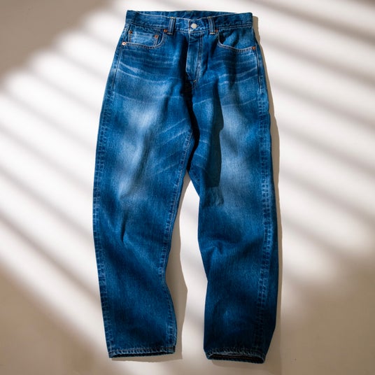 ウエストからワタリにかけてゆとりを持たせたワイドストレートシルエットが特徴で、無骨さと品の良さを兼ね備えたデザインに仕上げました。裾幅にもこだわり、バランスの取れたシルエットを実現。自然な穿き皴が入ったインディゴブルーは、ワークブーツや、ドレスシューズとも相性が良く、様々なスタイリングにフィットします。