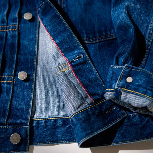インディゴのロープ染色を施した糸を使用し、旧式の力織機でゆっくりと織り上げることで、着込むほどに経年変化したような、味わい深いインディゴブルーが楽しめるデニムを実現しました。