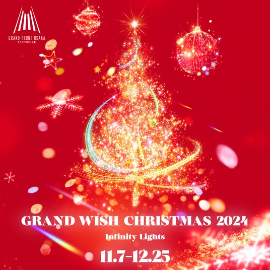 グランフロント大阪(大阪市北区大深町)は、クリスマスイベント「GRAND WISH CHRISTMAS 2024~Infinity Lights~」を11月7日(木)から12月25日(水)まで開催します。うめきたエリア(大阪駅北地区)ではグラングリーン大阪が9月6日に先行まちびらきをするなど、多様な人々が訪れる賑わいあふれるまちへとさらに進化を続けています。今年は「Infinity Lights」と題して、うめきたエリアに集う個性豊かな人々の願いを“無限の光”として表現し、グランフロント大阪を訪れるすべての人々に輝きあふれるクリスマスをお届けします。