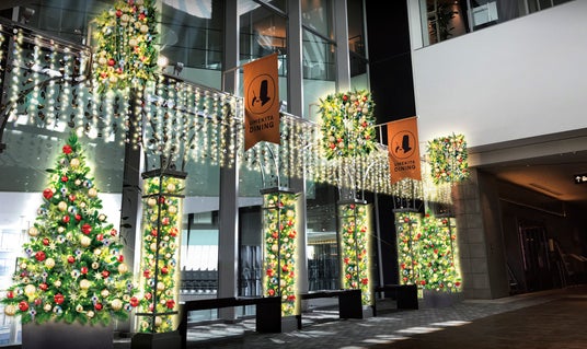 グランフロント大阪ショップ&レストランでは、飲食フロアを訪れるお客さまに特別なひとときを楽しんでいただけるよう、クリスマス装飾を実施します。南館7階・8階のガラス面のアーチには、レッドやゴールド、オーロラカラーのオーナメントを彩ったイルミネーションを施すほか、館内各所にもクリスマスツリーを設置して、皆さまをお迎えします。