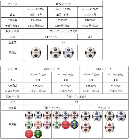 『ペレーダ』は1991年の発売以来、部活動の定番とも言われ、中学・高校の部活動を中心に試合球、練習球として長く愛用されてきました。6代目となる新しい『ペレーダ』ではキャッチコピーを『サッカーに一心』とし、プレーヤーだけでなく監督・コーチ、保護者など、サッカーをひたむきに頑張るすべての人々の心に響く存在となることを目指しています。また、発売当初から採用しているシンプルな亀甲デザインや、耐久性、超低吸水性、真球性といったサッカーボールに求められる機能はそのままに、昨今増加する人工芝における高温化での使用にも対応できる仕様へと改良しました。さらに、表皮や内部補強層のバッキング布部分に再生素材を使用することで、環境に配慮した構造を実現しています。