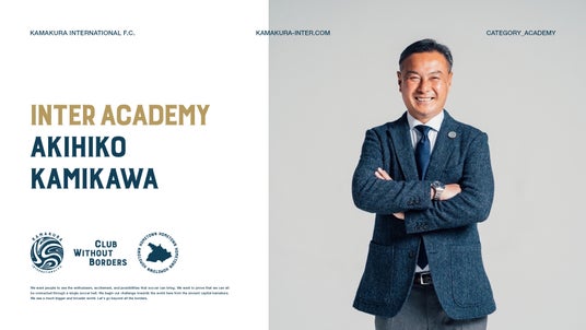 「わたしは鎌倉に生まれ、育ち、暮らしています。その人生の喜怒哀楽はサッカーと共にありました。愛する鎌倉の街で、愛するサッカーを通して、未来を担う選手たちと共に学び、共に歩んでいくことに喜びと責任を感じています。アカデミーに集う選手たちが、サッカーに主体的に取り組み、さまざまな経験を通して成長する姿を「美点凝視」で見守っていきます。鎌倉インテルファミリーみんなの力を結集して、アカデミーを育てていけたらと願っています。どうぞよろしくお願いいたします」