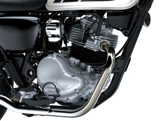 ・空冷ならではの大型の冷却フィンを持ち、Wのこだわりが各所に施されたクラシカルなデザインのエンジン