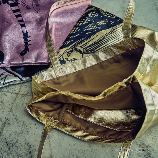 『ONE PIECE』『NARUTO-ナルト-』の作中に登場するアイテムのキーホルダーや、目を引くメタリックカラーの生地にイラストをデザインしたトートバッグがラインアップ