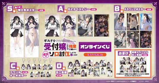 株式会社KADOKAWA(本社:東京都千代田区、取締役 代表執行役社長 CEO:夏野 剛、以下 KADOKAWA)は、運営するオンラインくじサービス「くじ引き堂」において、電撃文庫原作の、『ギルドの受付嬢ですが、残業は嫌なのでボスをソロ討伐しようと思います』の豪華賞品が手に入る<『ギルドの受付嬢ですが、残業は嫌なのでボスをソロ討伐しようと思います』オンラインくじ>を、2025年2月27日(木)12時より販売します。