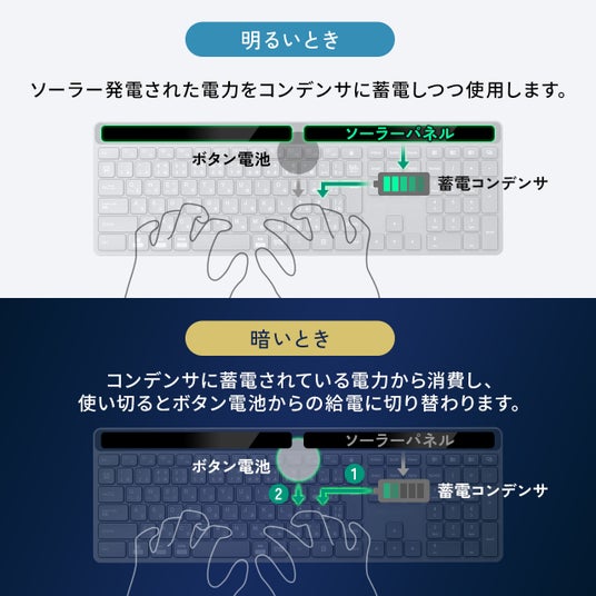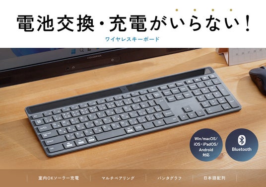 電池交換・充電がいらないソーラー充電式ワイヤレスキーボードを発売