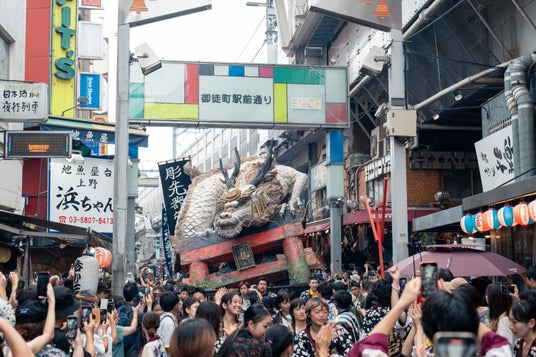知る人ぞ知る藝祭御輿がまちへやってきます。東京藝術大学の1年生が学科ごとにわかれ、ひと夏をかけて制作する御輿はまさに汗と涙の結晶と言っても過言ではありません。まちの中でみる御輿のスケールの巨大さに度肝を抜かれます!