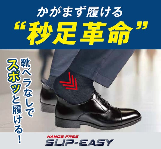 一般的に着脱の際に靴ベラを使用し、椅子や玄関先で腰掛けながらや、しゃがみながら履くことが多いビジネスシューズの“履き方”に着目し、スポッと素早くラクに履くことができる新感覚ビジネスシューズ“SLIP-EASY(スリップイージー)を発売いたします。