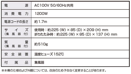 ・大風量2.0㎥/分、ハイパワー1200Wで速乾。※ノズル無しの時、測定方法は、JIS C 9613に基づく。